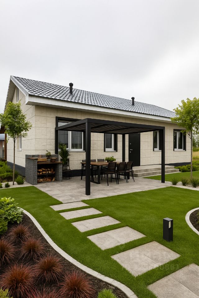В объявлении размещены реальные фотографии, а также рендеры с визуализацией, чтобы вы могли представить, как всё будет выглядеть после завершения работ. На фото — один из вариантов дизайн-проекта благоустройства участка.