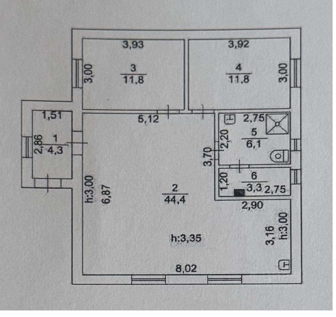 Планировка: кухня-гостиная, 2 полноценные комнаты, котельная, большой санузел