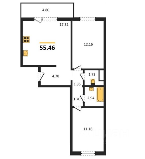 Студия + 2 спальни.