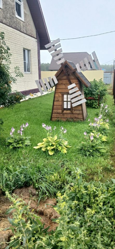 Участок правильной формы 25 * 40 м, площадь - 10 соток. Участок высокий, не требуется откачка септика. Лицевой забор из текстурированного профлиста высотой 230см с откатными воротами на автоматике. Освещение по всему периметру. 70 процентов участка газонная трава. На участке расположены: - открытая терраса из лиственницы, 8 * 3,5 м , - детский городок с качелями трех видов, гамак, гладиаторская сетка, - детский домик, - вольер для собак, - инструментальный домик 1,5 * 1,5 м, - сарай с витражными окнами 4 * 4 м, - новый утепленный курятник или крольчатник 2 * 2 м (не использовали), - домик закрывающий скважину, - мельница закрывающая септик.