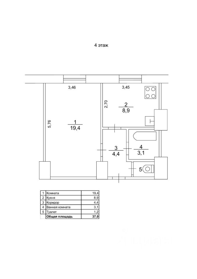 ПЛАНИРОВКА И ПРОСТРАНСТВО • Общая площадь — 37 м² • Просторная комната — 19,4 м² • Большая кухня — почти 9 м² (редкость для однокомнатных квартир) • Раздельный санузел • Высокие потолки ~3 м — ощущение воздуха и объёма • Большие окна, много естественного света даже на северной стороне