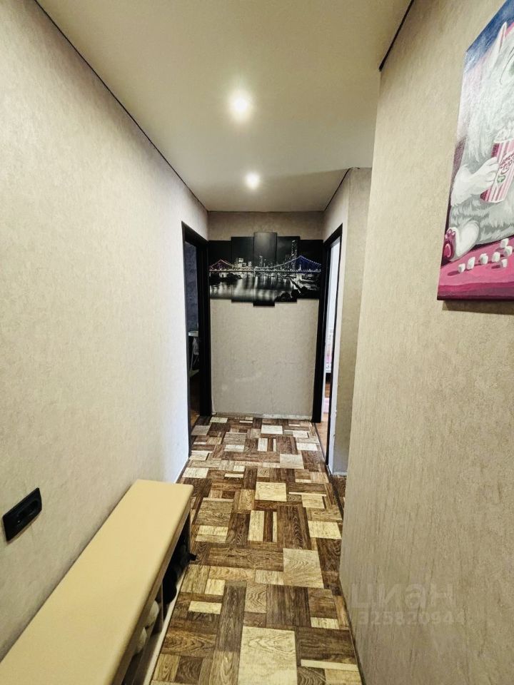 Квартира в отличном состоянии, выполнен ремонт. -Квартира тёплая и светлая, окна выходят на две стороны -Кухня: 6 кв.м. новый кухонный гарнитур с техникой, натяжной потолок, -В зале есть стенка, диван, в спальне потолки натяжные, сделана гардеробная на стенах новые обои, пол- линолеум.