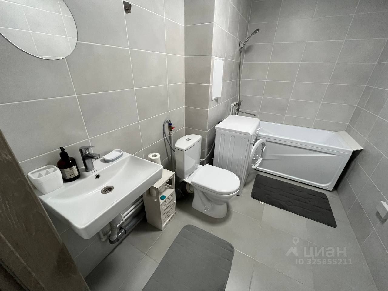 Санузел совмещенный, оформлен в светлых тонах. Из окон открывается вид на тихий двор, где есть спортивная площадка и открытая парковка. В доме имеются пассажирский лифт.