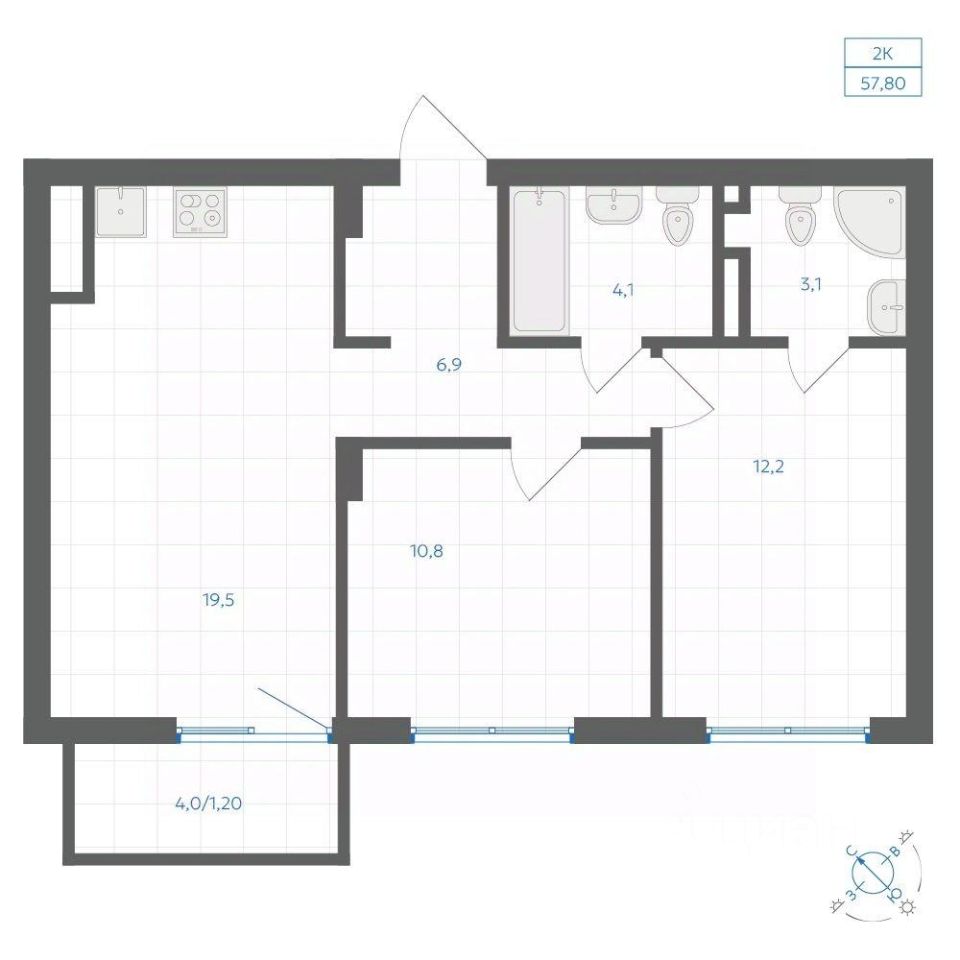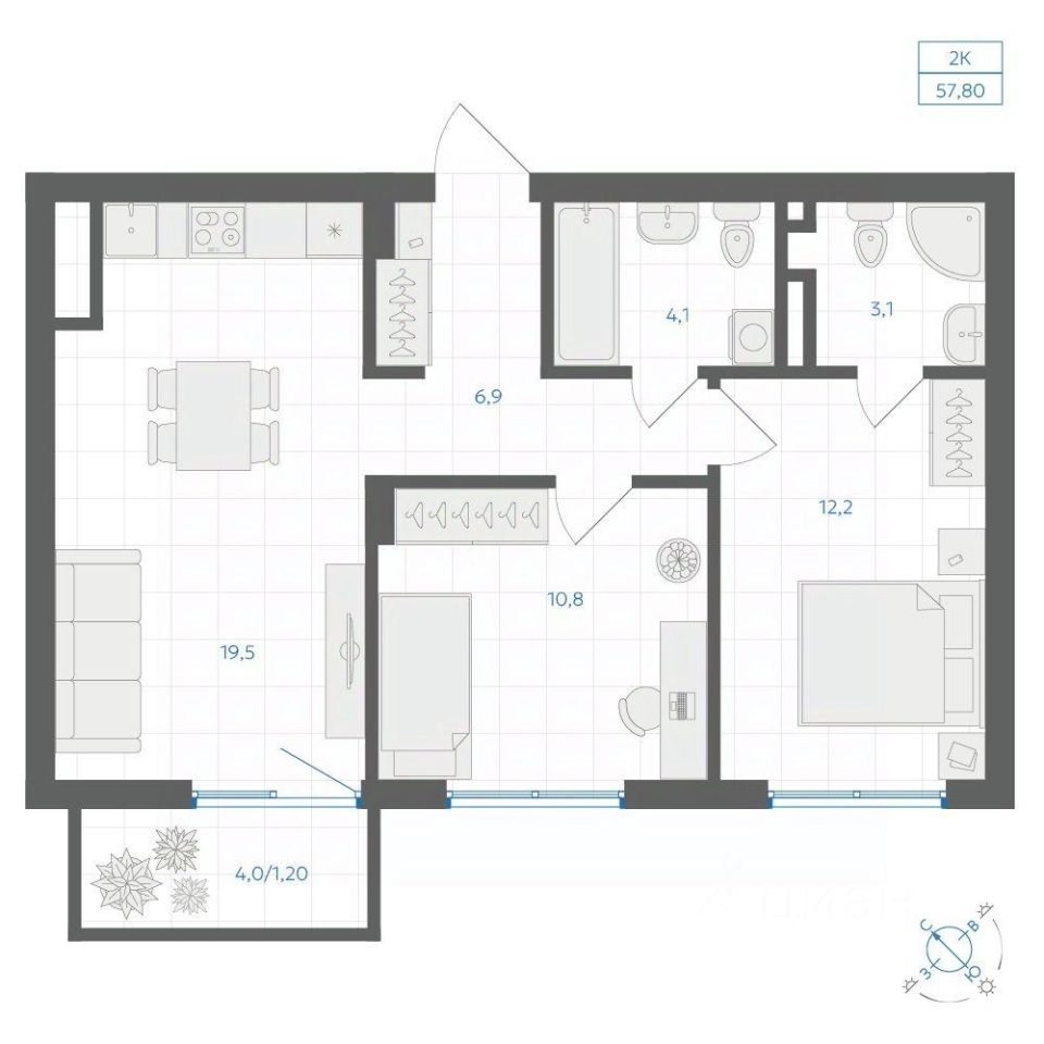 Общая площадь57,8 м2