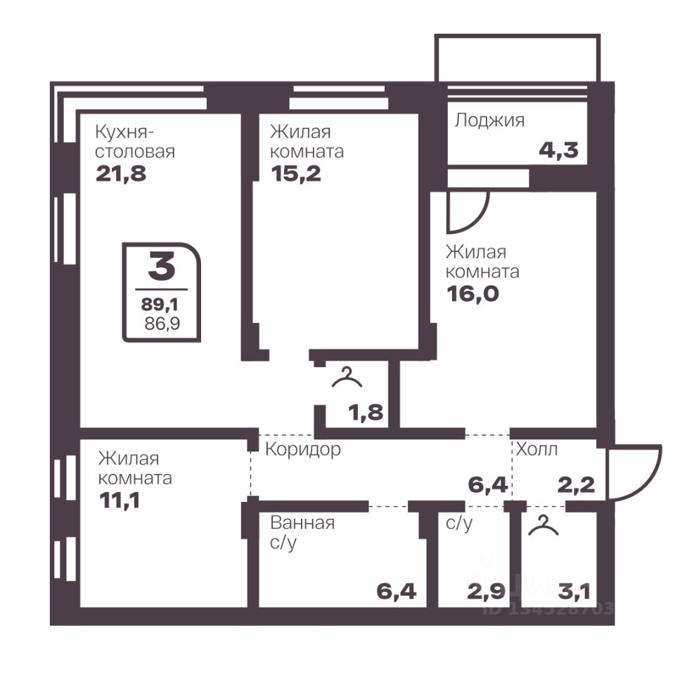 Общая площадь86,9 м2