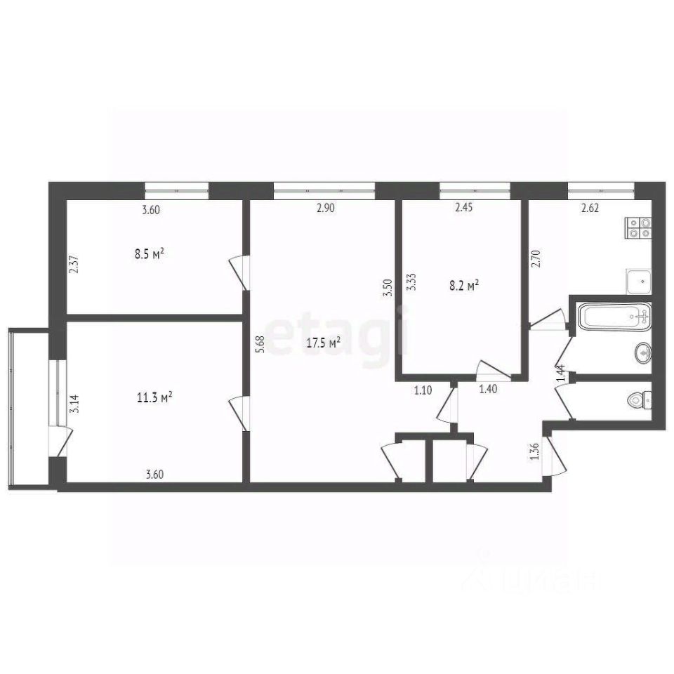 ПРОДЁТСЯ 4-Х КОМНАТНАЯ КВАРТИРА В П. ОКТЯБРЬСКИЙ, КОПЕЙСКОГО ГОРОДСКОГО ОКРУГА Квартира с тремя отдельными комнатами и просторной гостиной для большой и дружной семьи. Общая площадь квартиры 60,7 м2. 3-разделенные спальни ( 8,5м2, 11, 3м2 и 8,2м2 ), 1 комната проходная (17,5м2 ), кухня 6м2. С\У разделений, коридор просторный. В квартире при продаже частично остаётся мебель. Очень тёплая и светлая квартира. Дом кирпичный. Соседи дружелюбные, все друг друга знают.