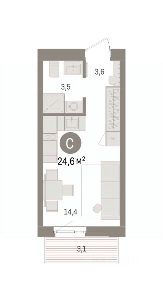 Студия в Брусника в Эльтауне. Особенности планировки: балкон. квартиры в нашей базе: ЛТН01.1-Ж4.6.5.