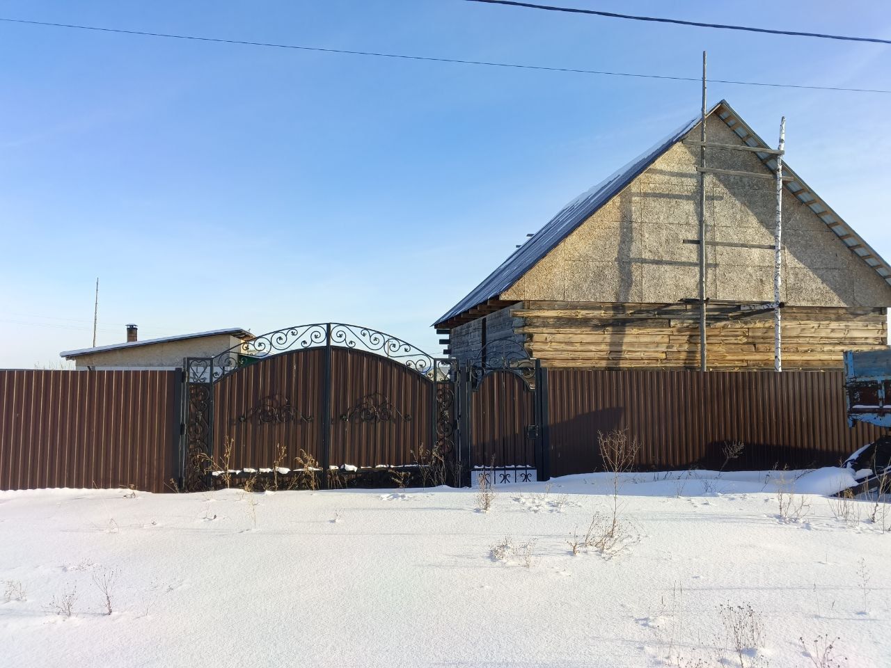 На участке имеется объект незавершенного строительства (дом на фундаменте, с крышей, 100квм), баня, и небольшой домик (2023 г.постройки, домик с печным отоплением и тёплым полом, можно жить), фото по запросу.