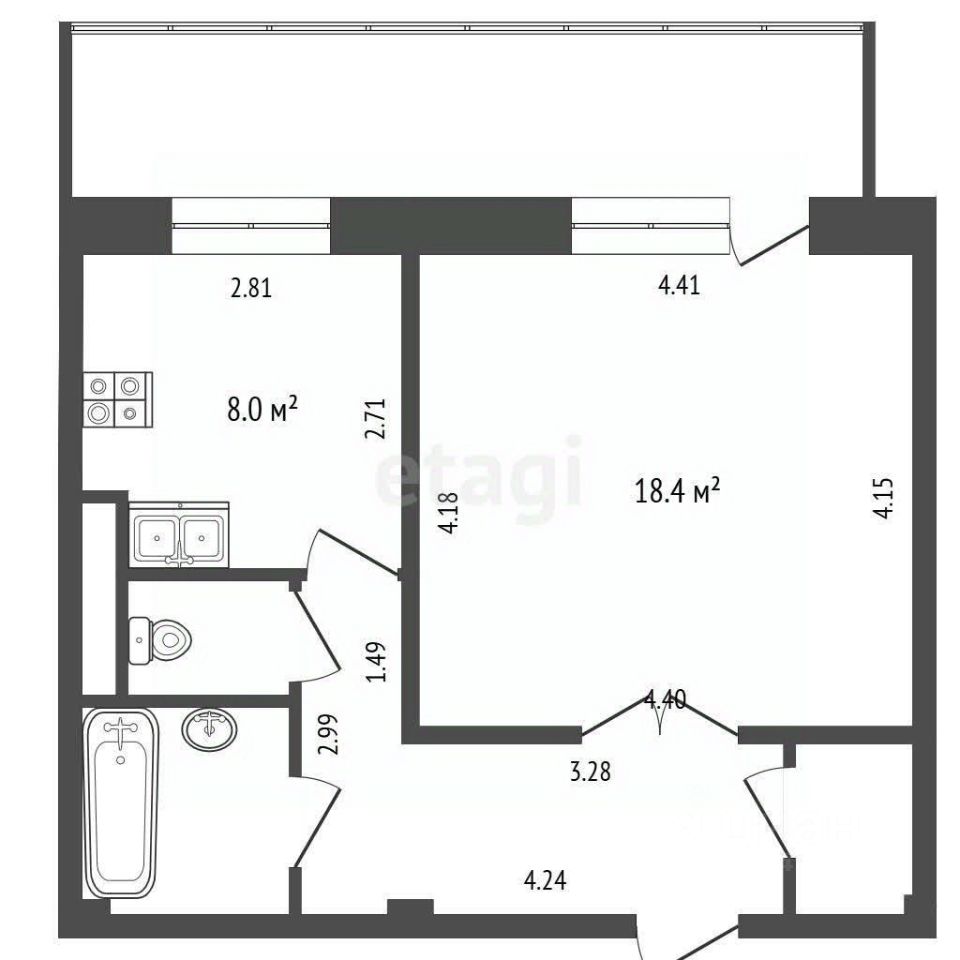 — общая площадь 39,3 м² — комната 18 м² — кухня 8 м² — потолки 2,7 м — раздельный санузел — просторная лоджия 9 м² — окна на солнечную сторону, высокий этаж — много света и тишины — есть кладовая — квартира тёплая, соседей не слышно Ремонт от застройщика, аккуратный и ухоженный.