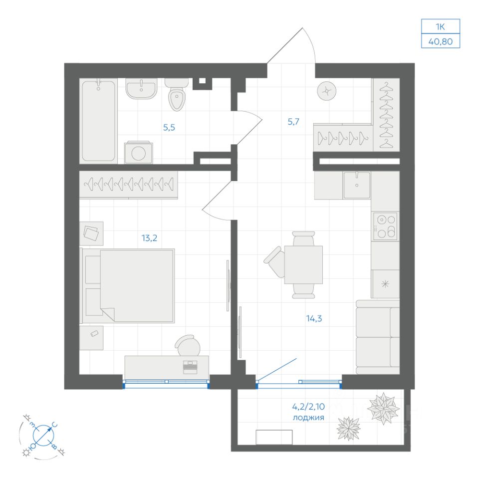 Общая площадь40,8 м2