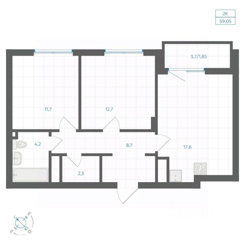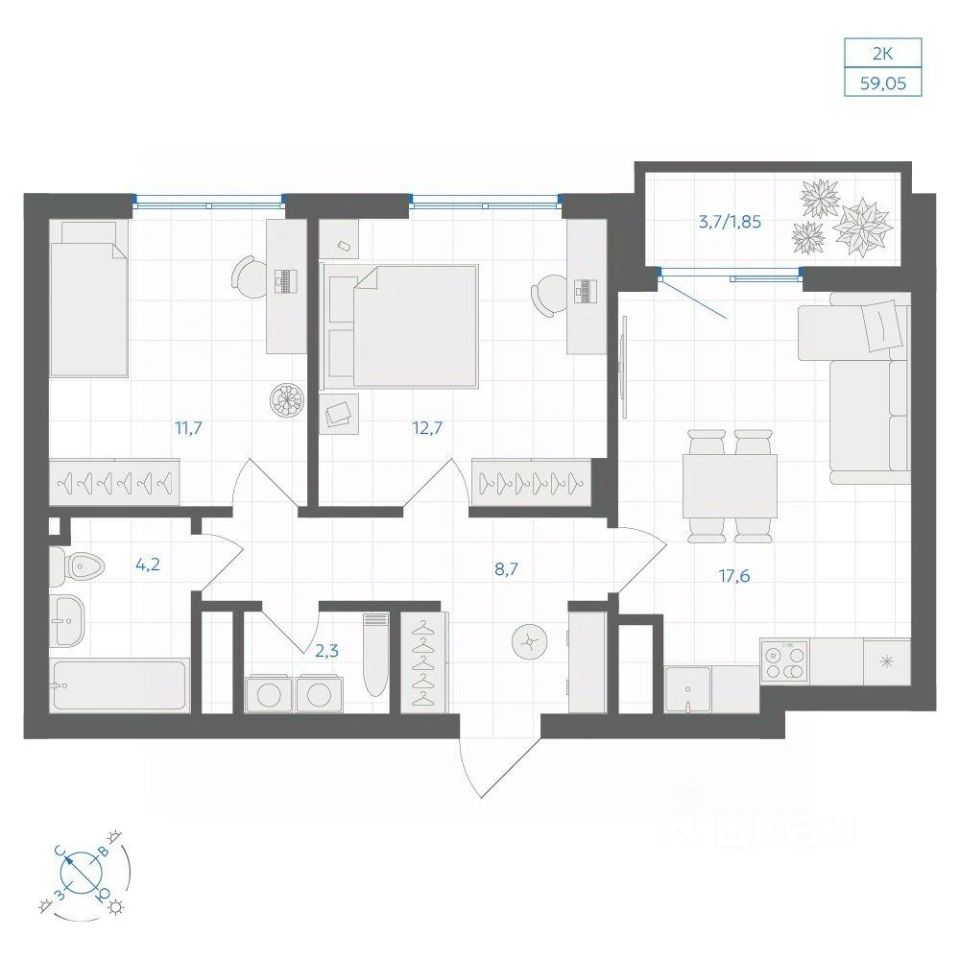 Общая площадь59,05 м2