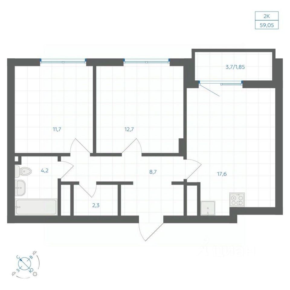 Общая площадь59,05 м2