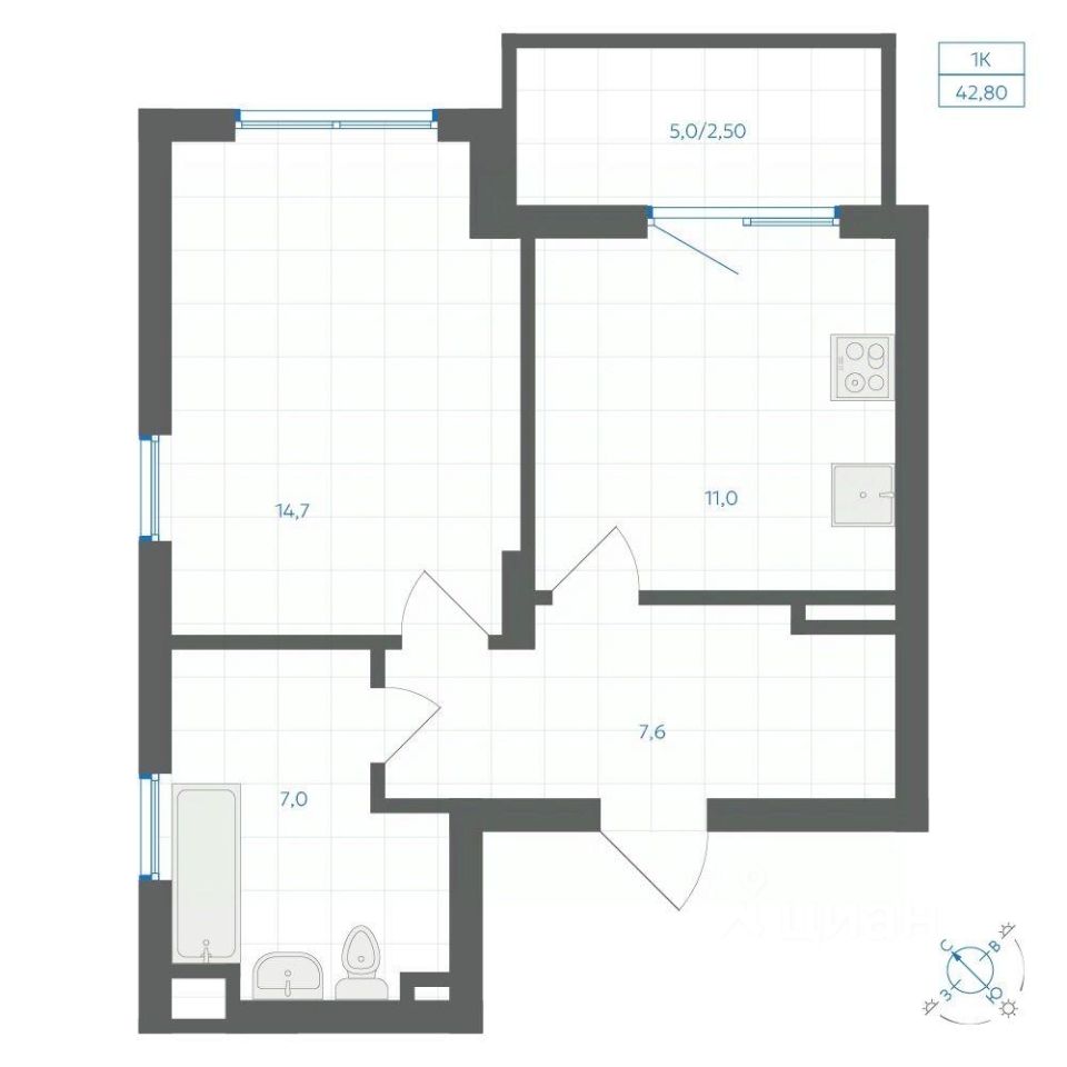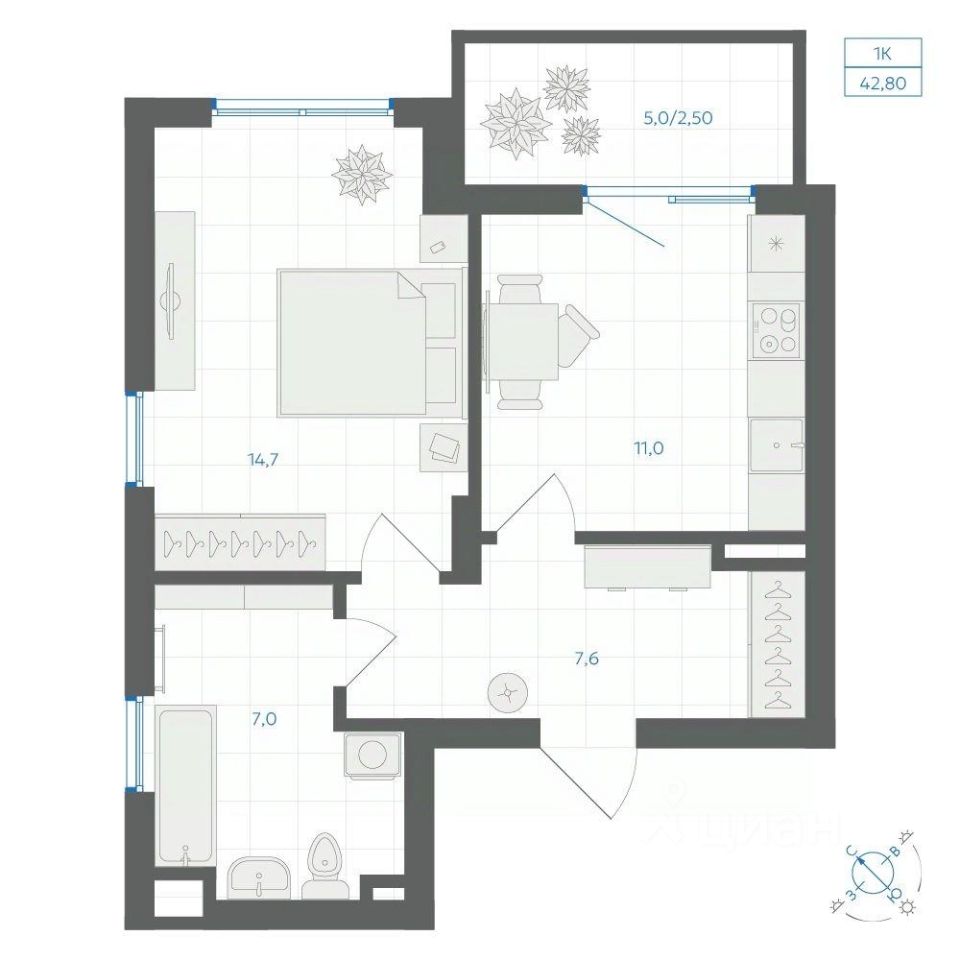 Общая площадь42,8 м2