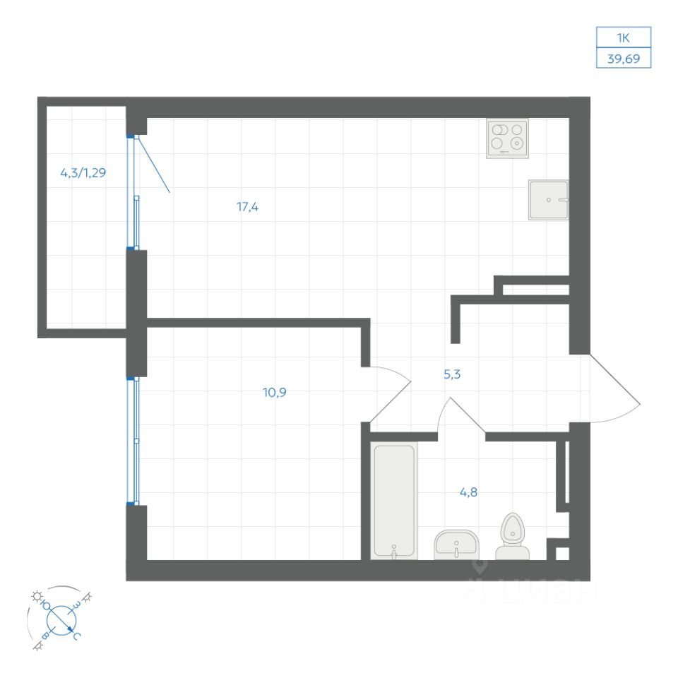 Общая площадь39,69 м2
