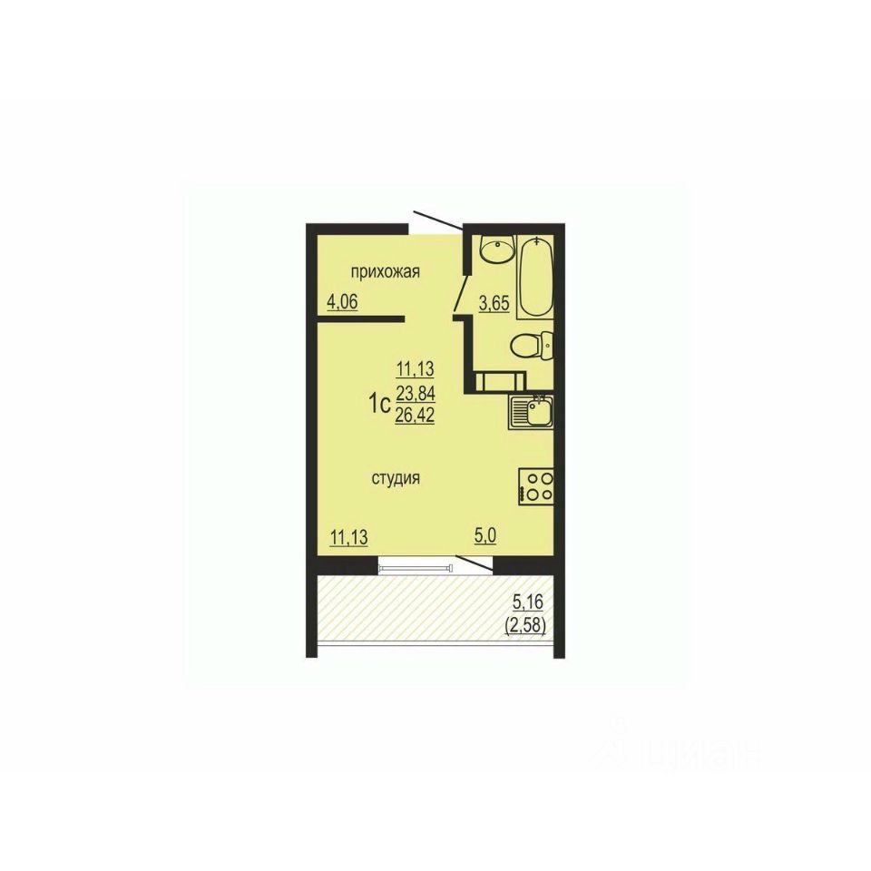продам 1-к, Дружбы (мкр Заречный), 5 стр.3 410 000 ₽