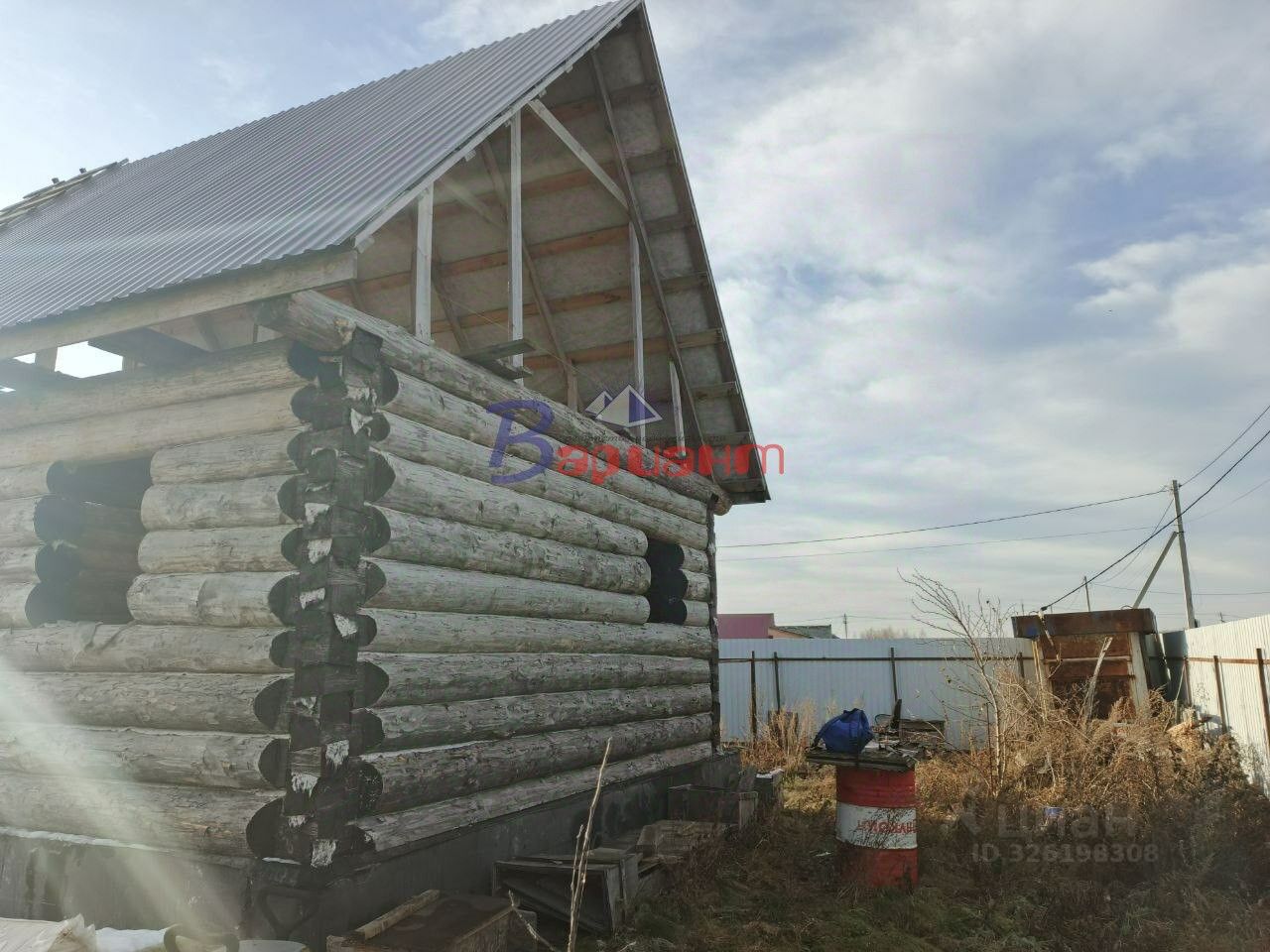 Hа участкe имeетcя деревянный cруб 58 для бани или небольшoгo дoма.