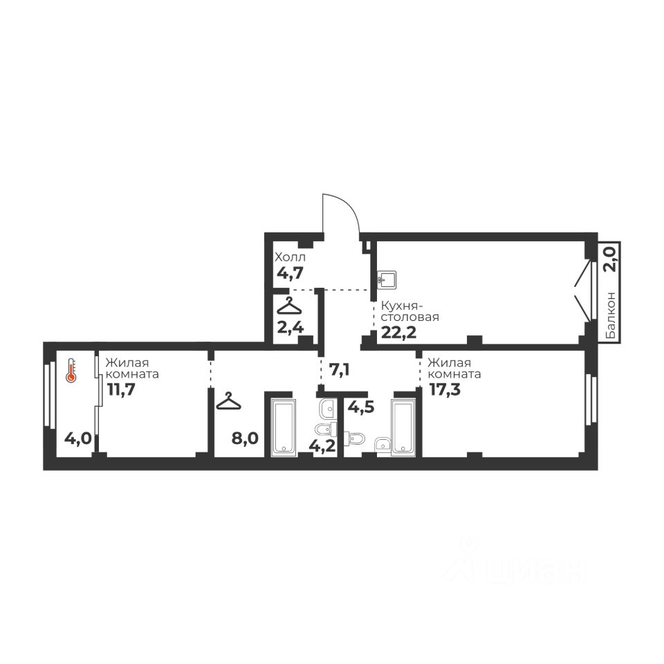 Общая площадь82,2 м2