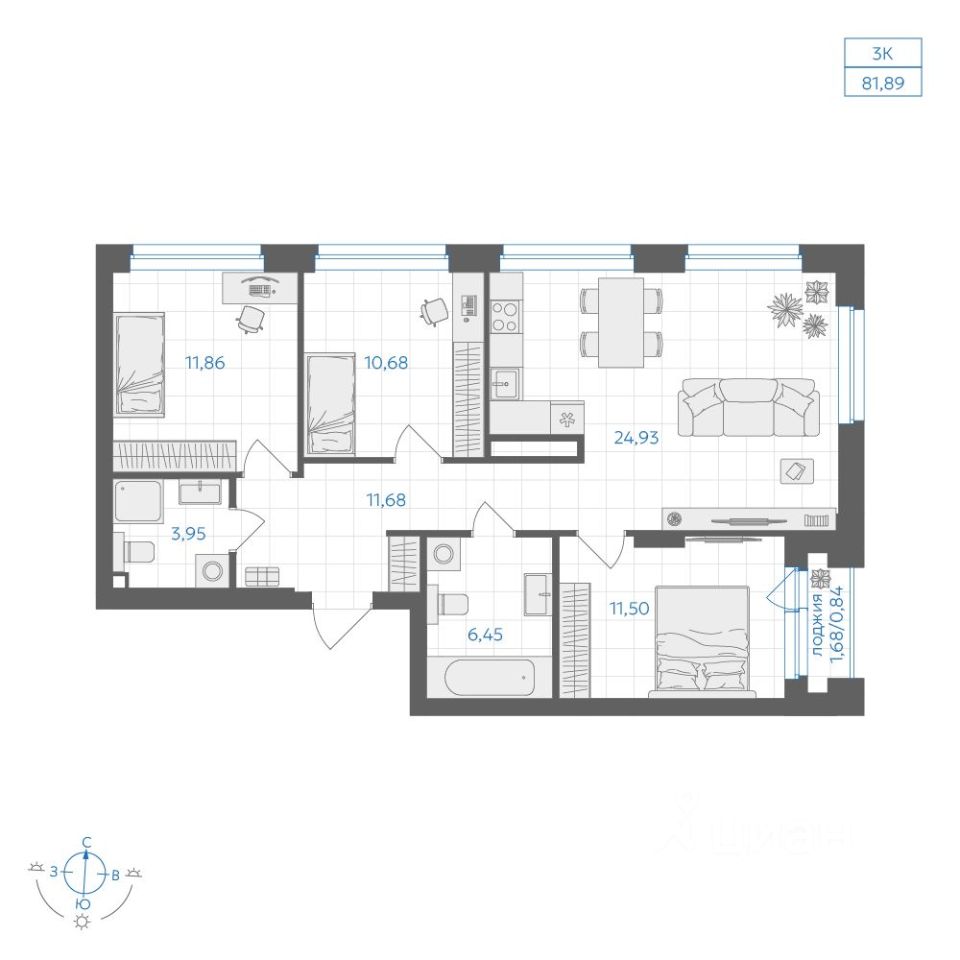 Общая площадь81,89 м2