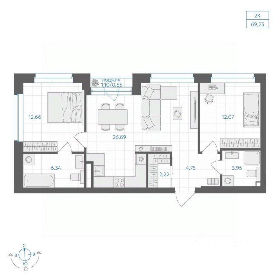 Общая площадь69,23 м2