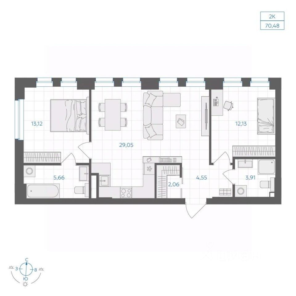 Общая площадь70,48 м2