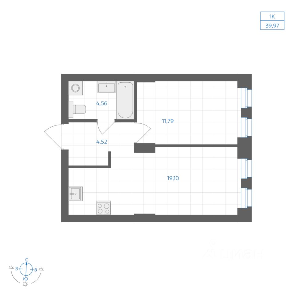 Общая площадь39,97 м2