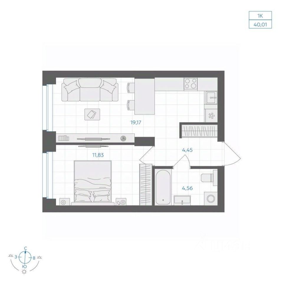 Общая площадь40,01 м2
