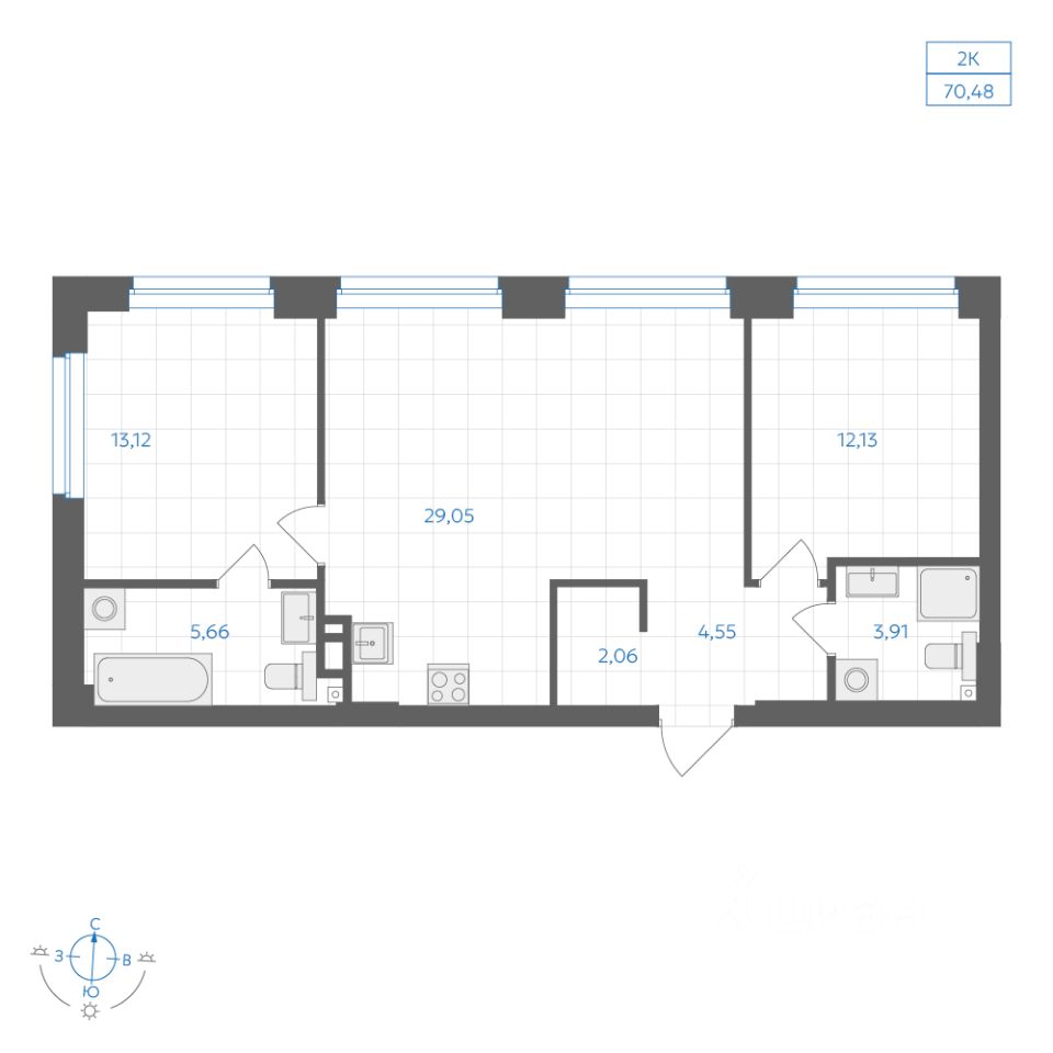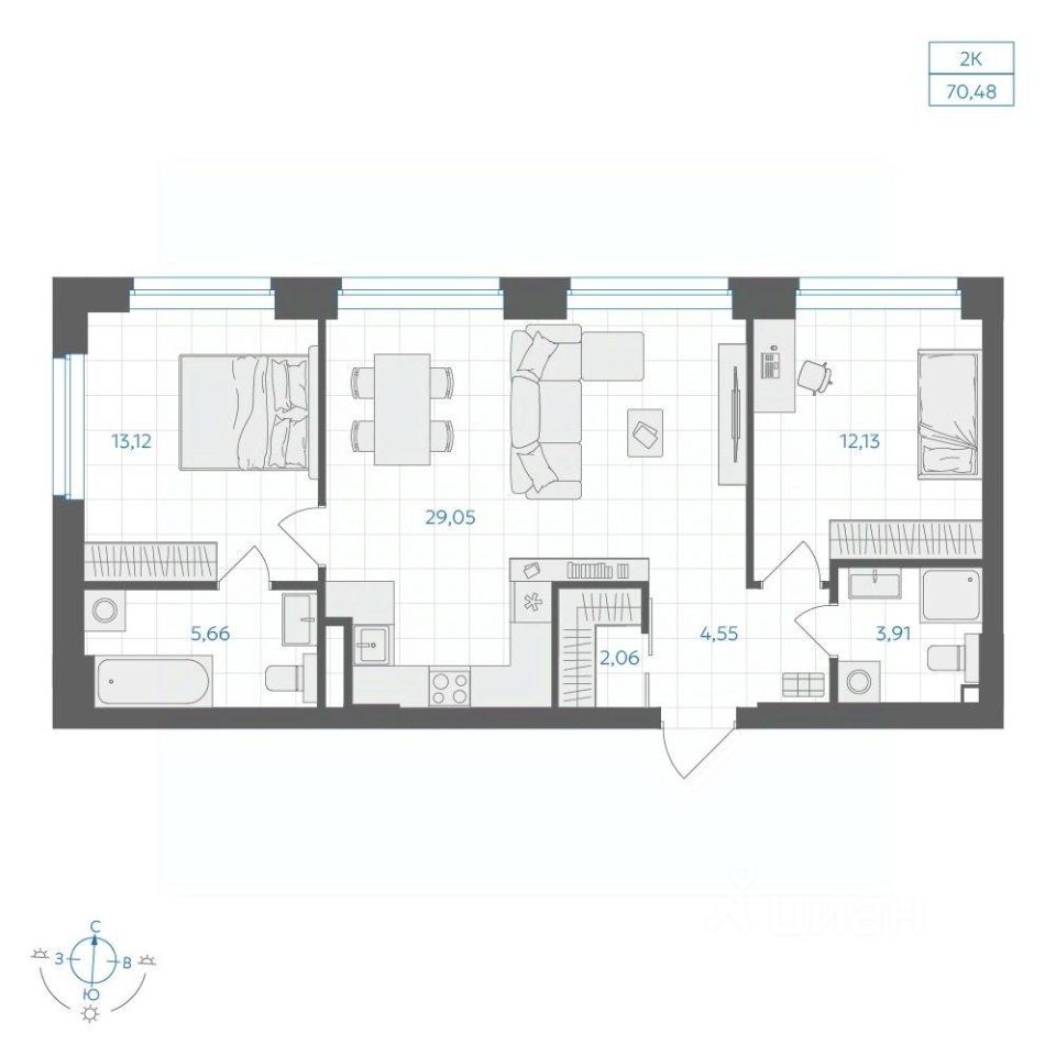 Общая площадь70,48 м2