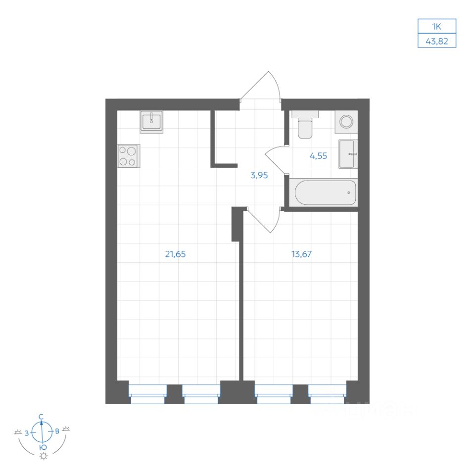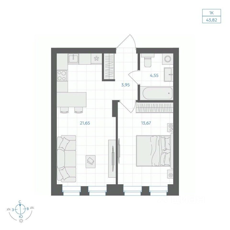 Общая площадь43,82 м2