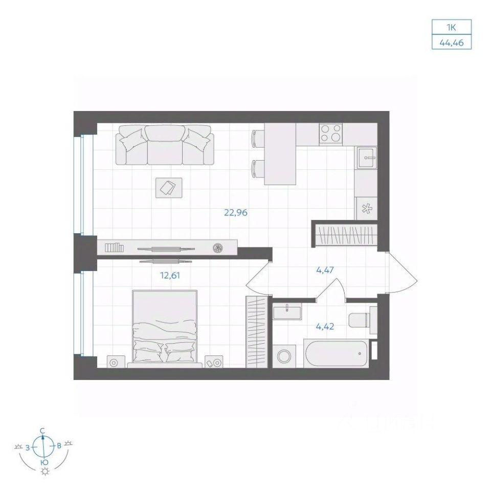 Общая площадь44,46 м2