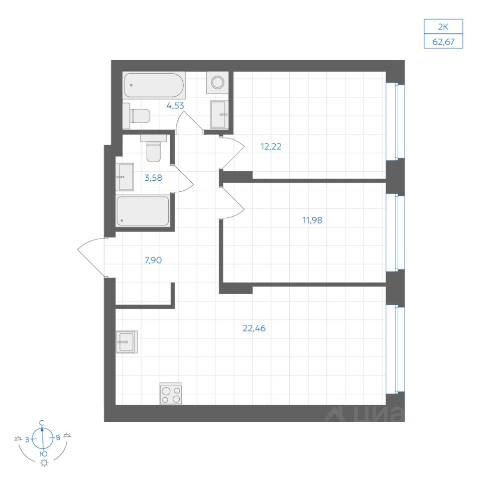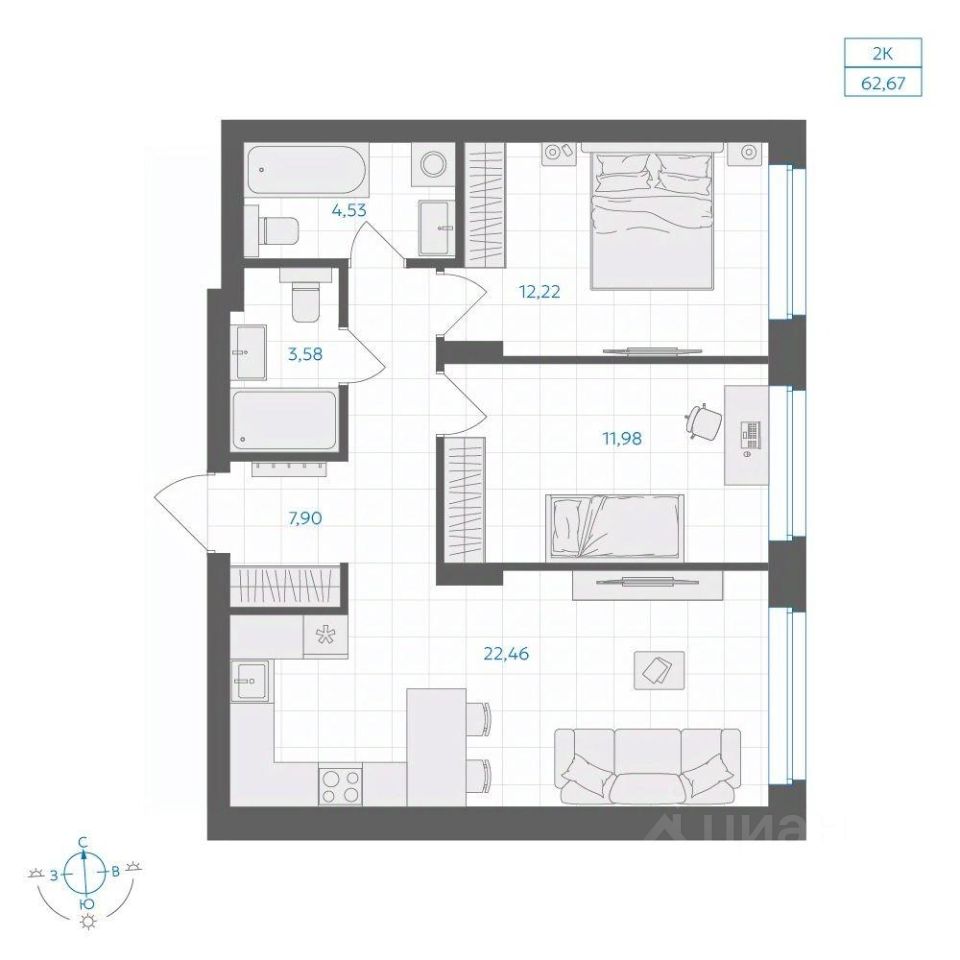 Общая площадь62,67 м2