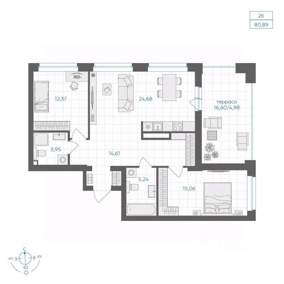 Общая площадь80,89 м2