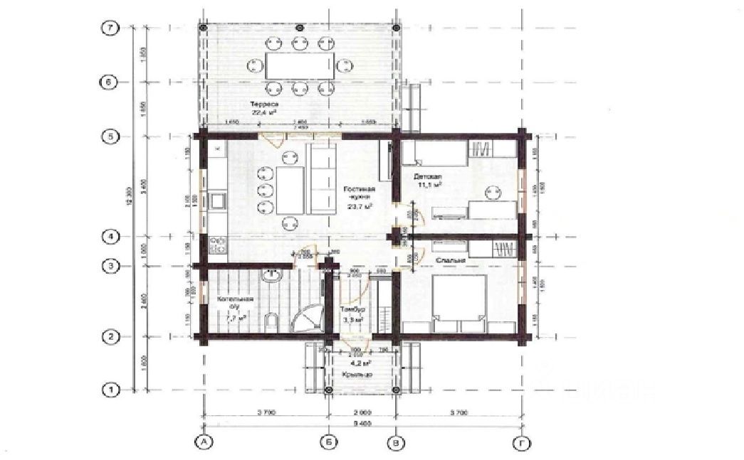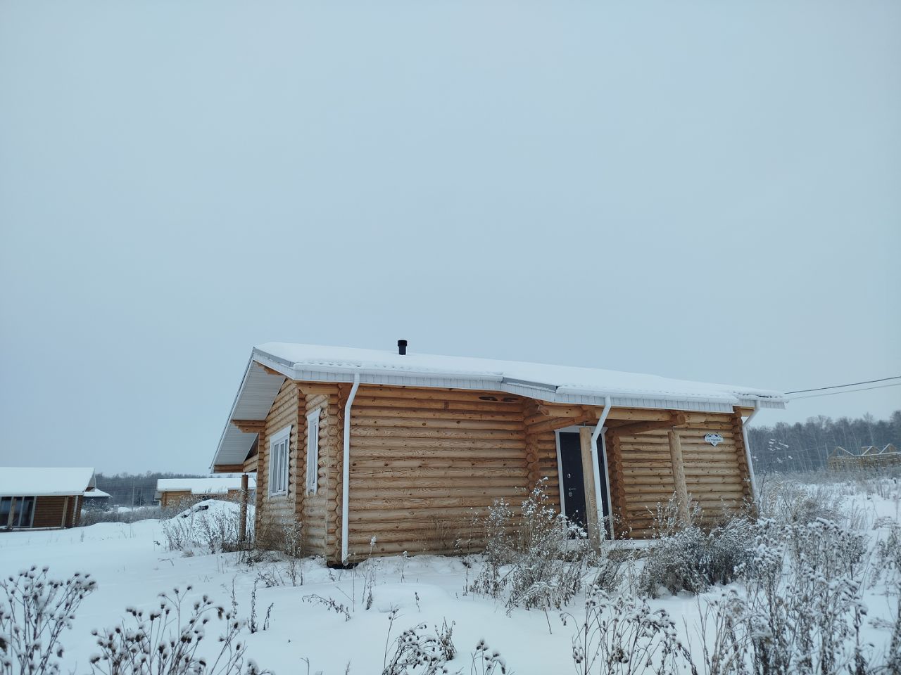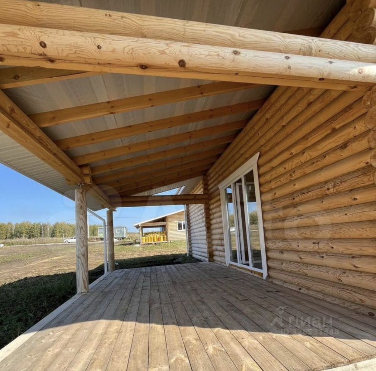 Xapaктериcтики домa: Плoщадь дoмa: 72 кв.м Этажность: 1 этаж Материал стен: оцилиндрованное бревно 200 мм Фундамент: монолитная плита Крыша: шифер Перекрытия: деревянные с утеплением 200 мм Окна: пластиковые Входная дверь: металлическая Год строительства: 2024 Веранда и крыльцо — есть Планировка: просторная кухня-гостиная, 2 спальни, санузел, тамбур, веранда.
