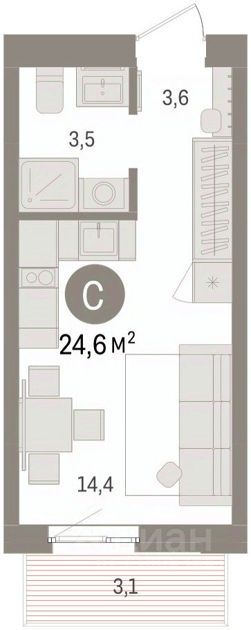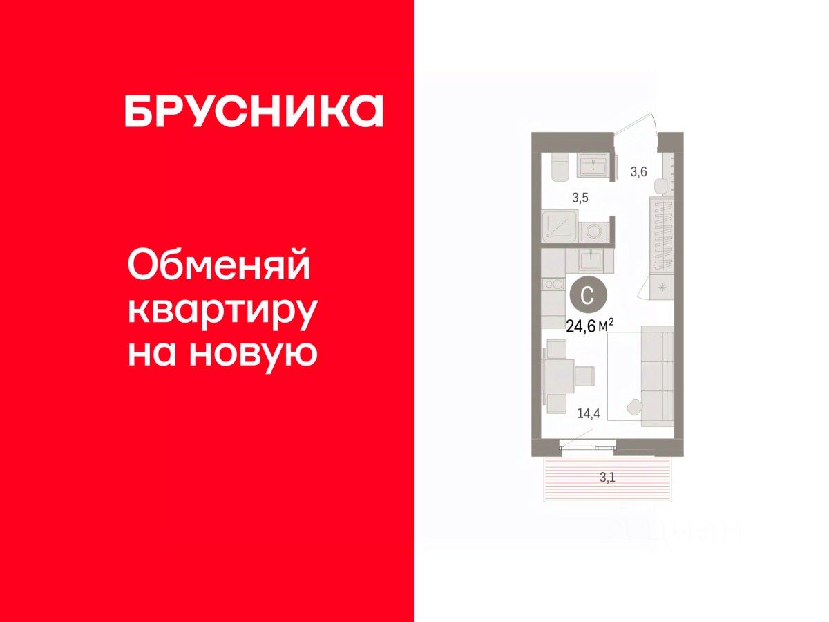 Студия в Брусника в Эльтауне. Особенности планировки: балкон. квартиры в нашей базе: ЛТН01.1-Ж4.6.5.
