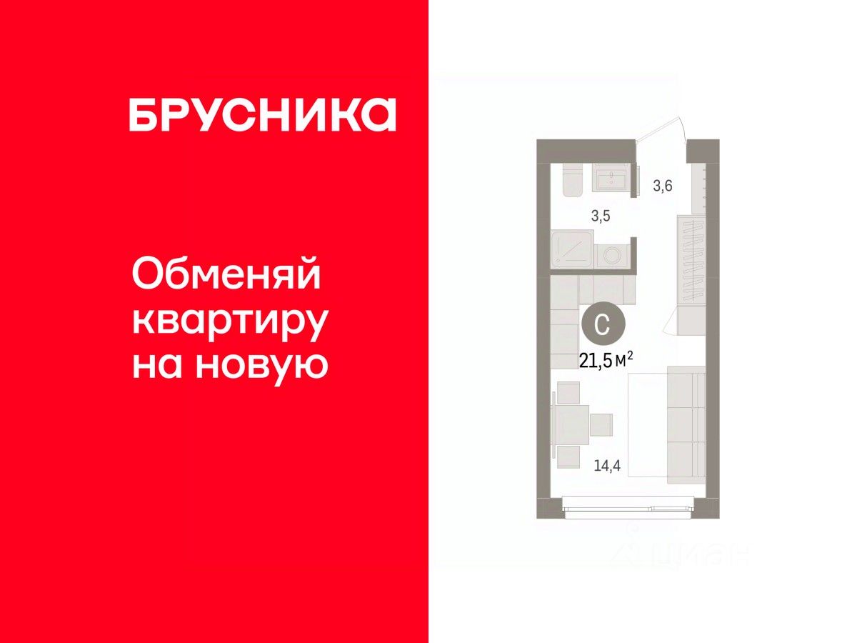 Студия в Брусника в Эльтауне. квартиры в нашей базе: ЛТН01.1-Ж1.2.5.
