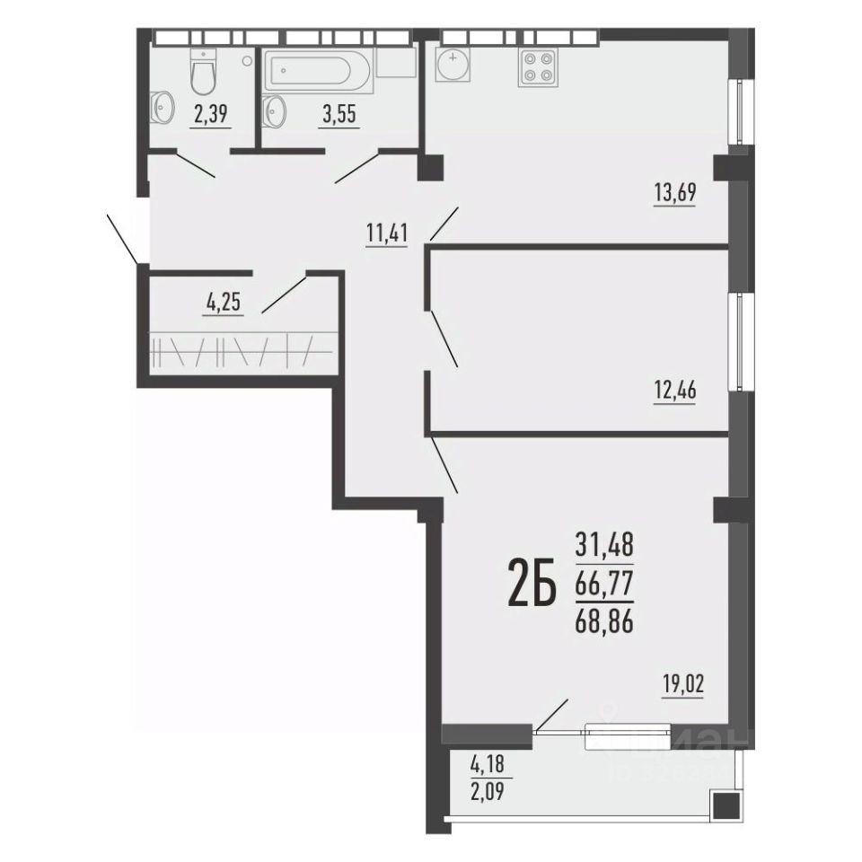 Общая площадь66,5 м2