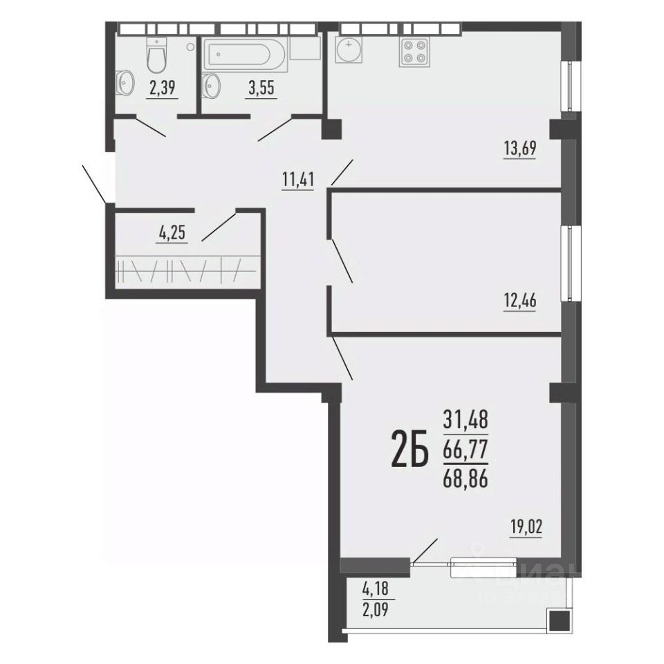 Общая площадь66,7 м2