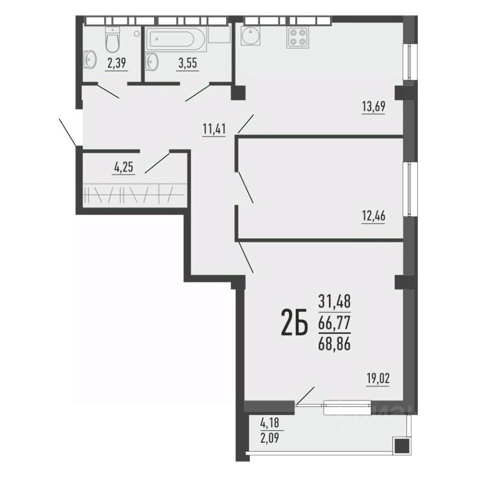 Общая площадь66,1 м2