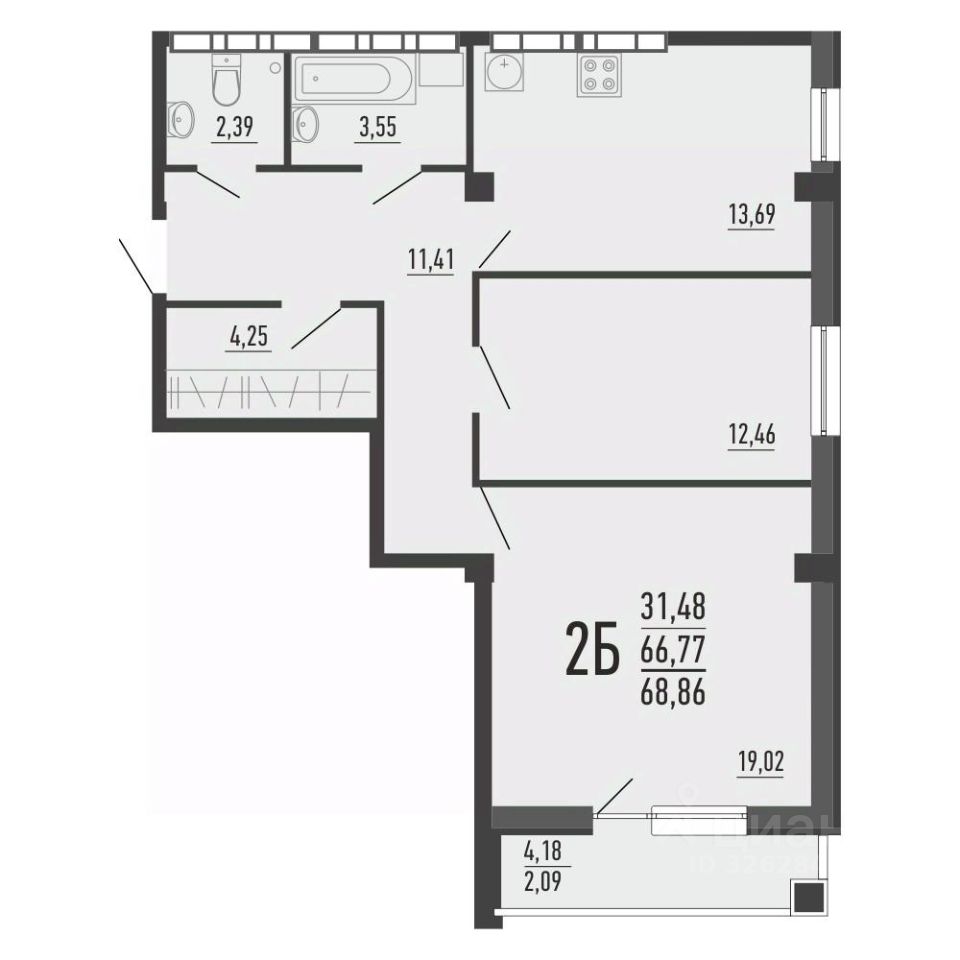Общая площадь62,7 м2