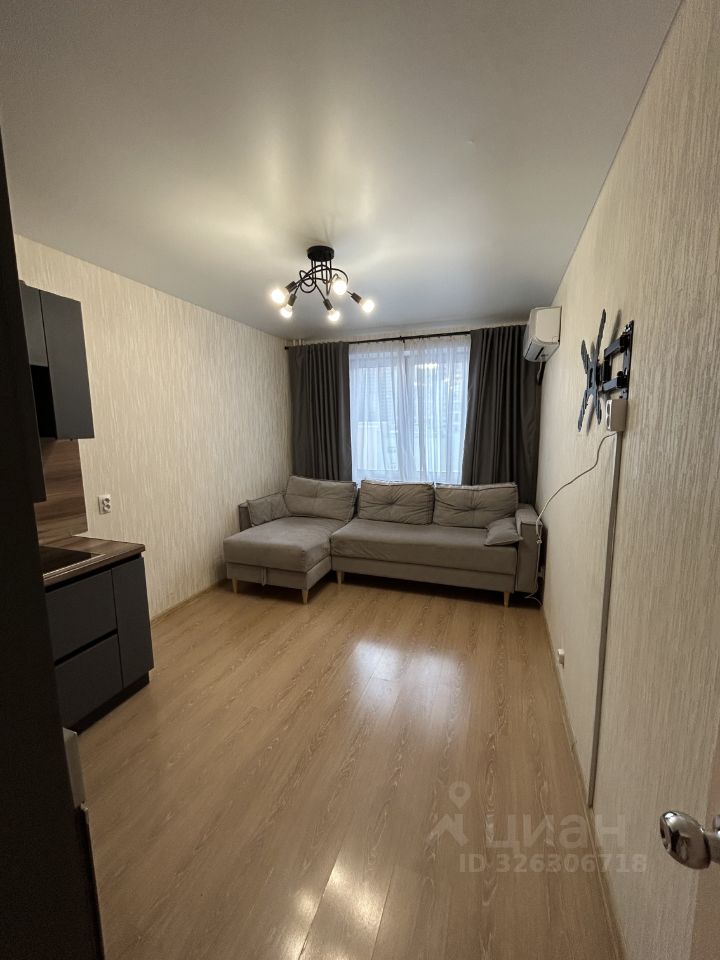 Кухня-гостиная площадью 14 м² оборудована всей необходимой мебелью и техникой, включая холодильник(привезем к заселению) и телевизор ( так же привезем и повесим к заселению). Из окон открывается приятный вид на двор с детской площадкой и открытой парковкой.