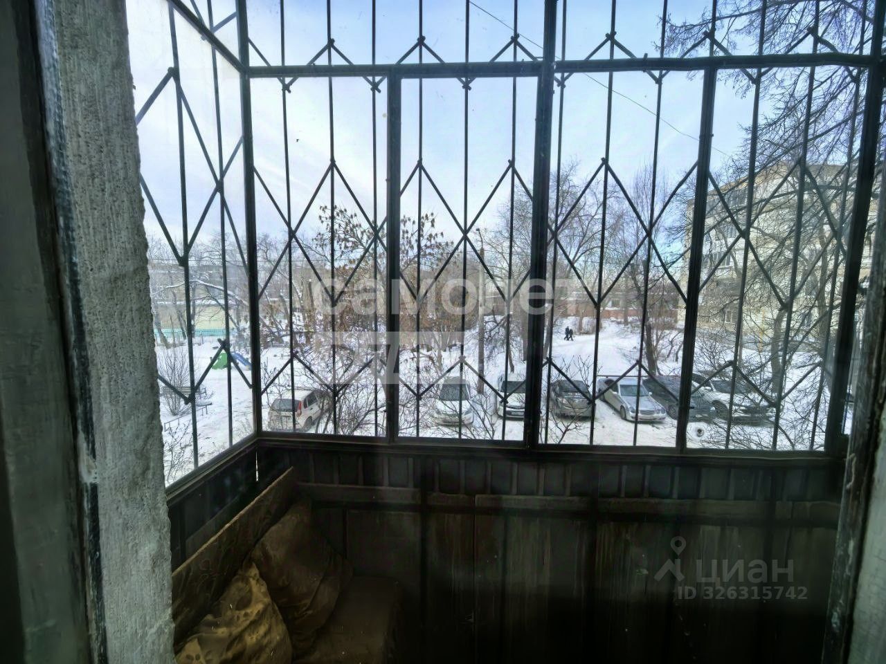 Балкон без остекления, но с решетками.