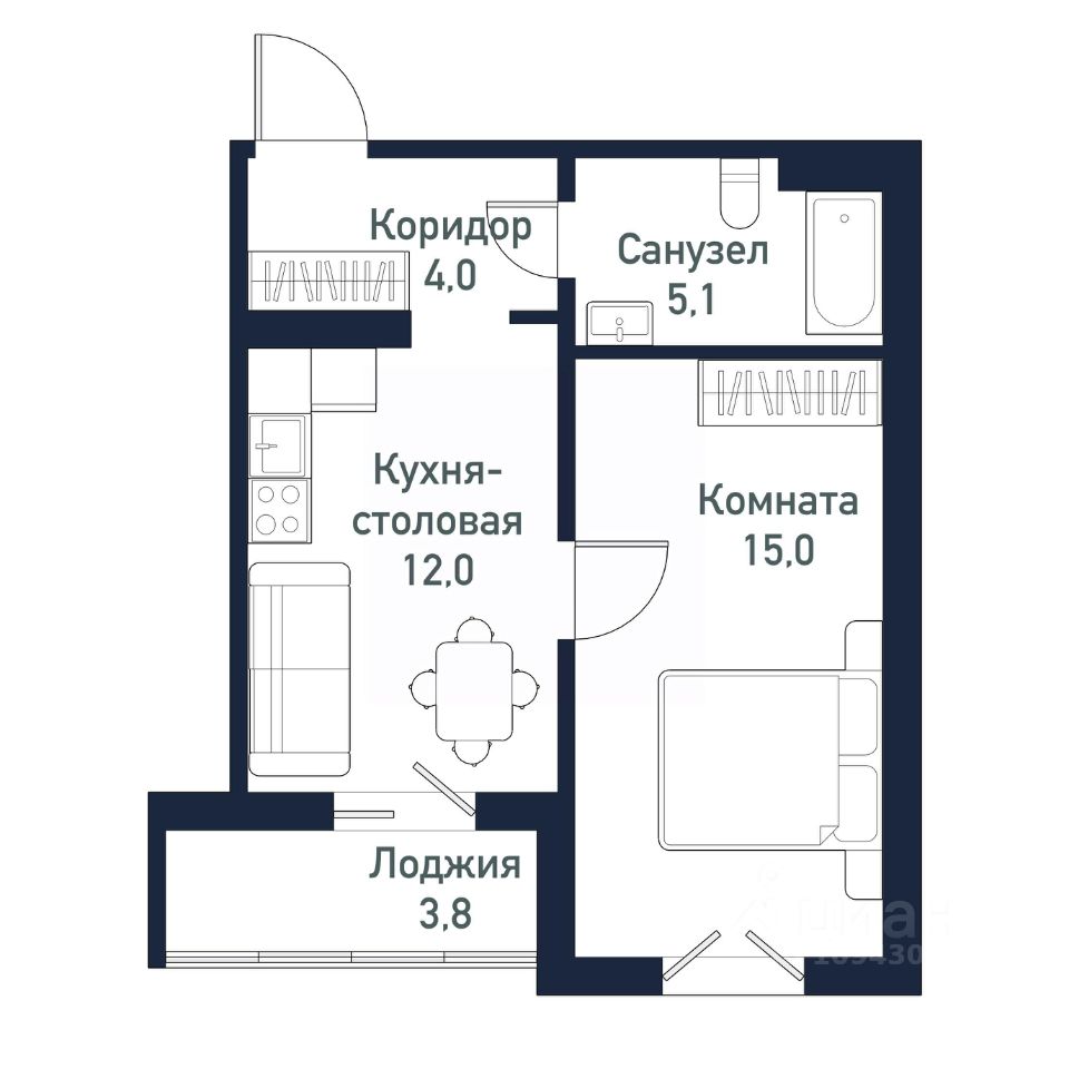 Общая площадь35,7 м2