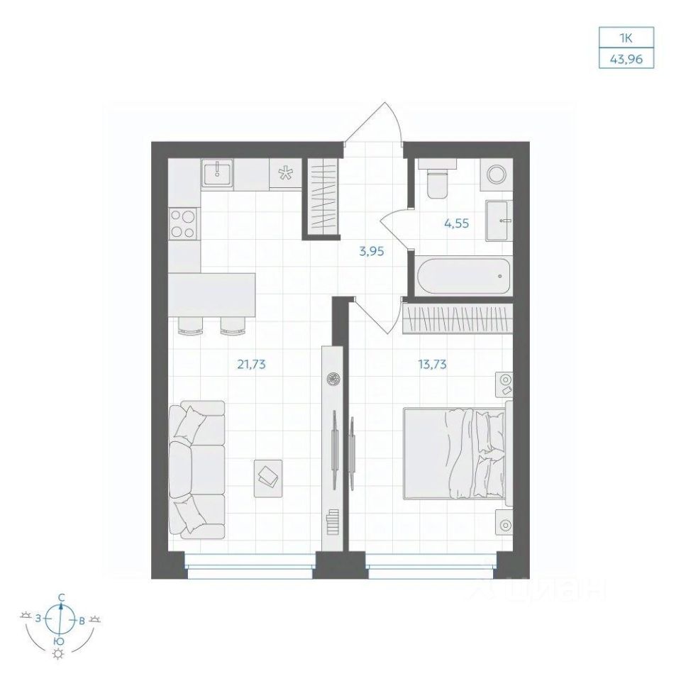 Общая площадь43,96 м2