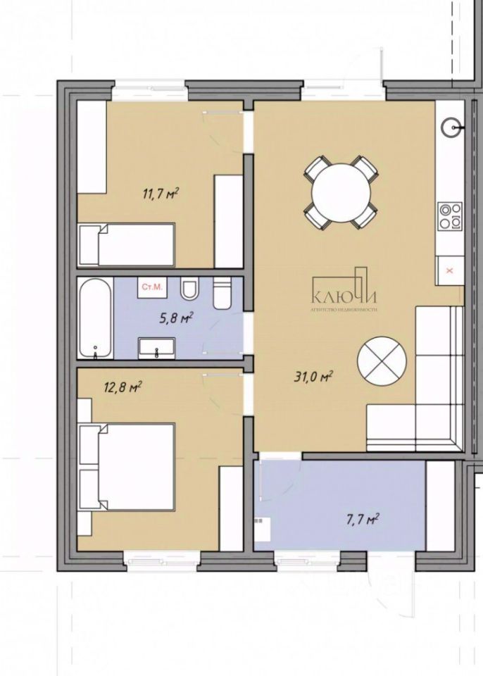 Общая площадь70 м2