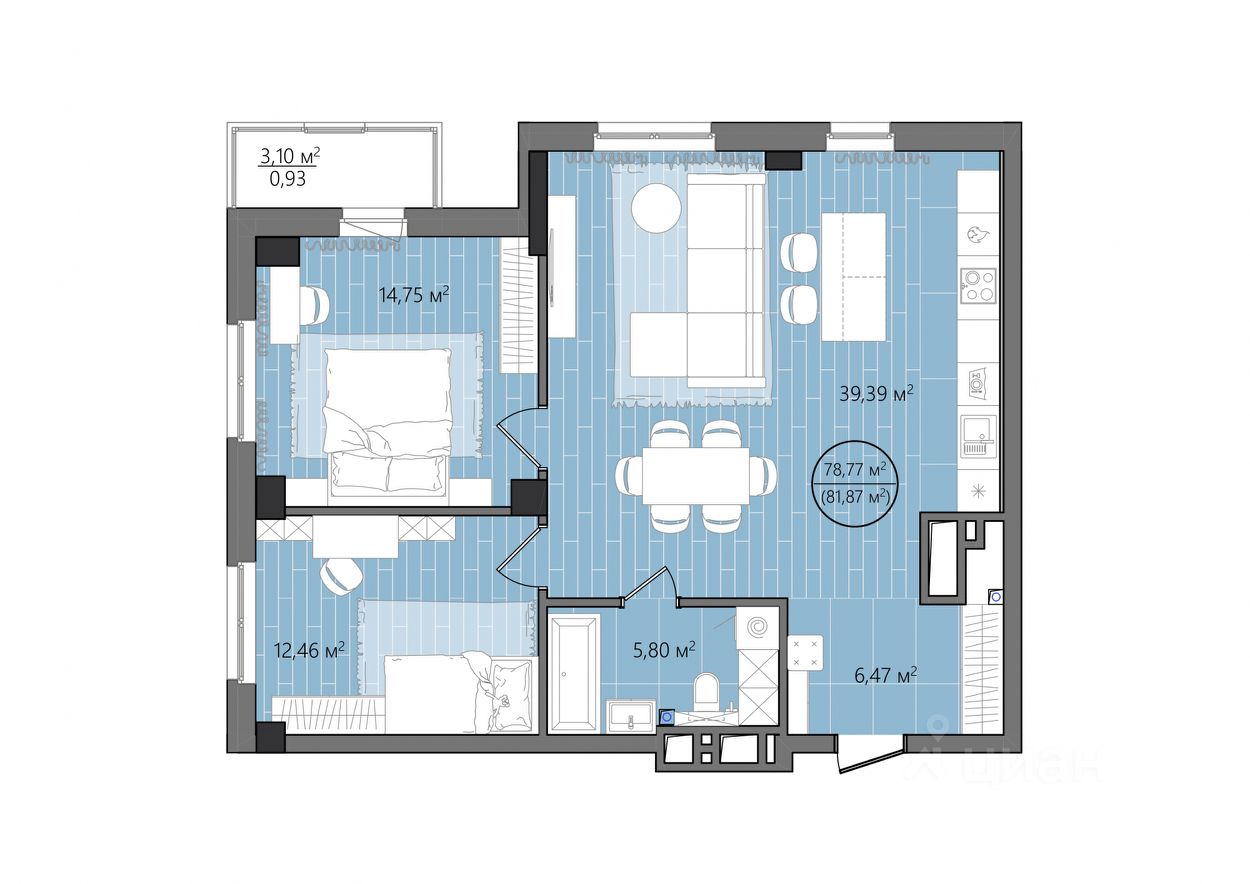продам 3-к, Героя России Яковлева А.В., гп 1113 390 903 ₽