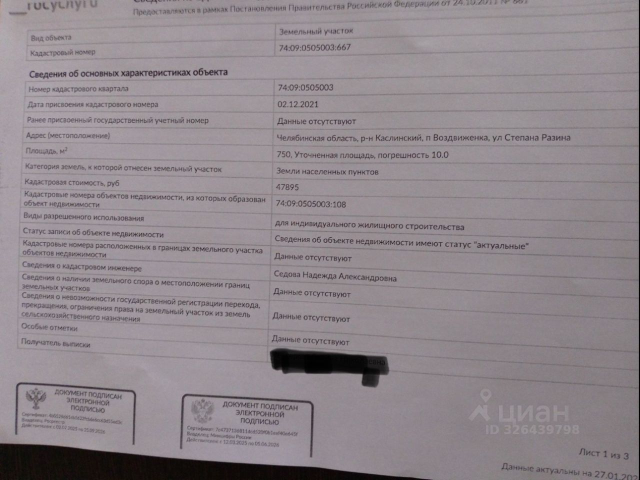 • Площадь участка750 соток