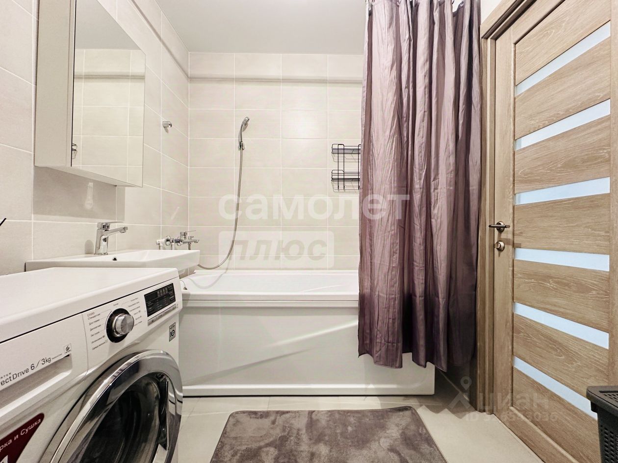 О КВАРТИРЕ Квартира полностью меблирована и оборудована для комфортного проживания! + Гостиная-кухня 17 кв.м., встроена удобная кухня, холодильник, обеденная зона, диван на 2 спальных места, телевизор + Спальня, 12 кв.м., двуспальная кровать с мягкой спинкой, подъёмником для дополнительного хранения, шкаф. + Просторный санузел, 5 кв.м., установлена стиральная машина, акриловая ванная, умывальник. + В прихожая, 7 кв.м., вместительный шкаф, с зеркалом, комодом и отделением для обуви. + Лоджая, 5 кв.м., на полу покрытие ''травка''.