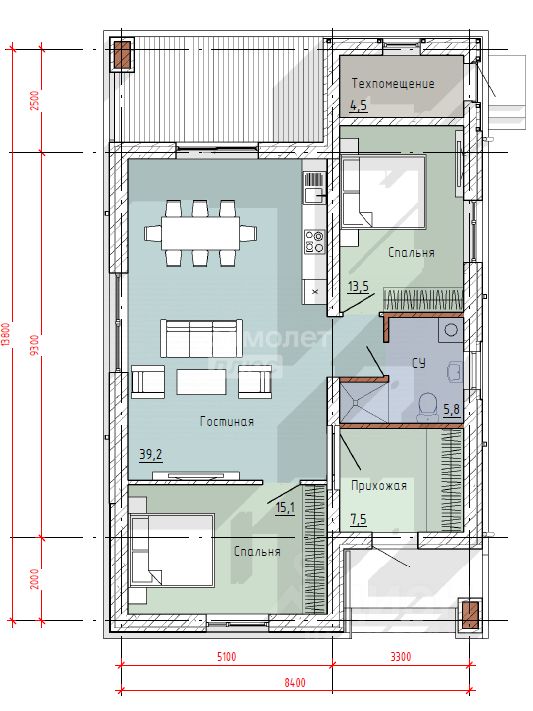 Общая площадь90 м2