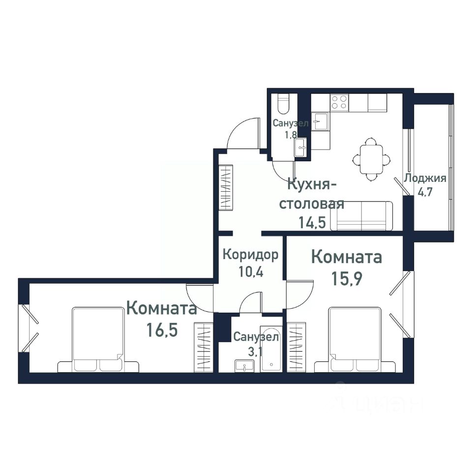 продам 2-к, Просторная (мкр Просторы), 44 стр.10 822 000 ₽