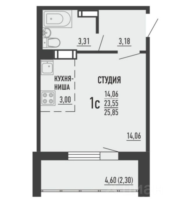 ПЛОЩАДЬ КВАРТИРЫ 23.6 М2