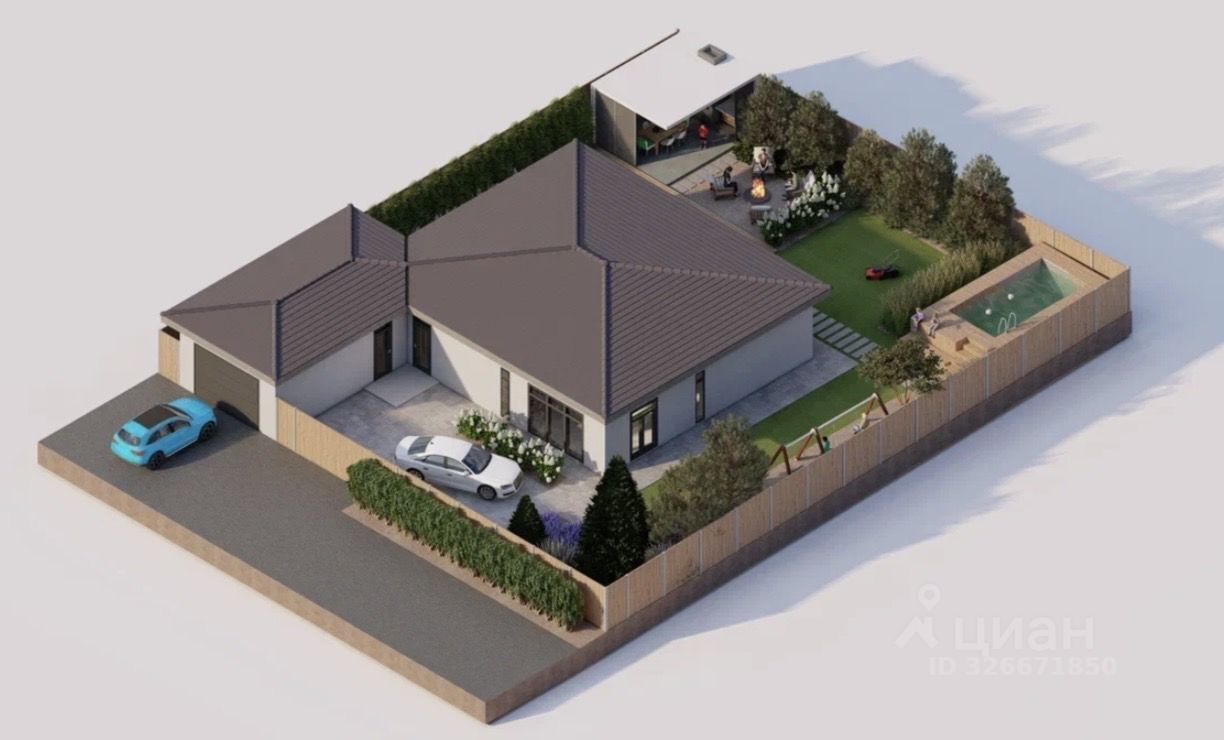 Продаётся современный одноэтажный дом в поселке Малиновка, готовый к проживанию, с благоустроенным участком и подогреваемым бассейном.
